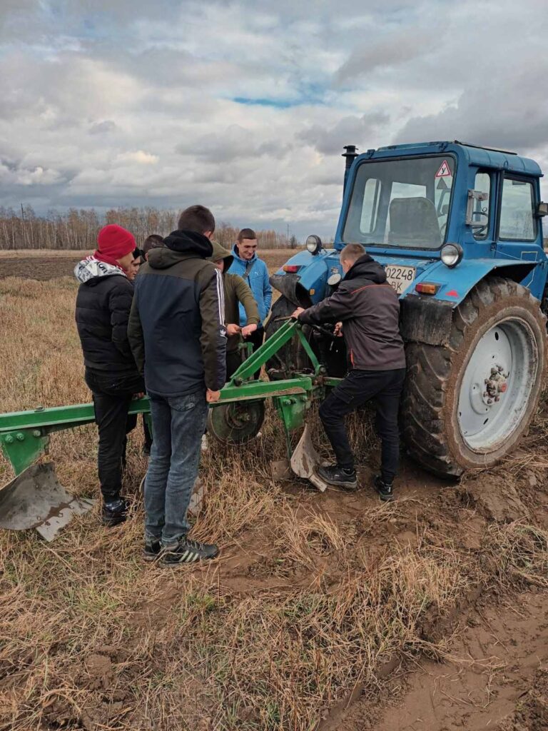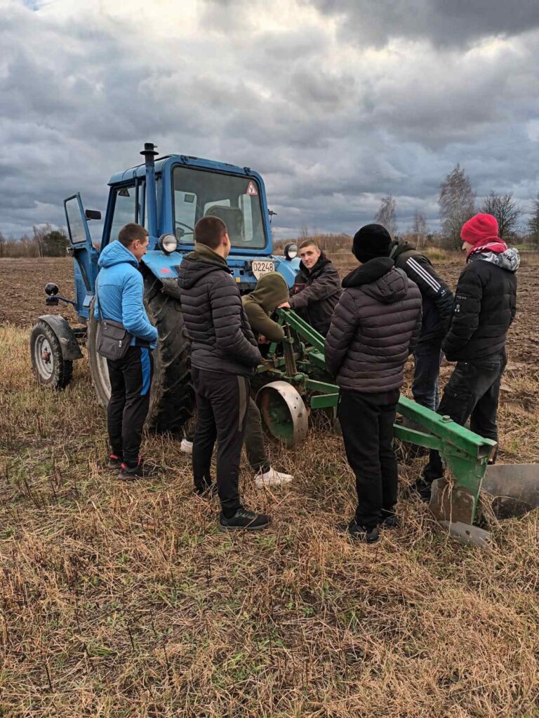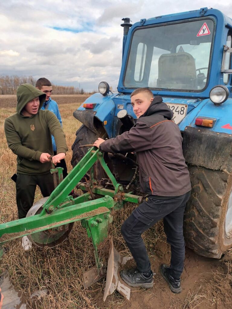 На виробничому навчанні здобувачі освіти групи 20, професія “Тракторист-машиніст с/г виробництва, кат. А1”. Під керівництвом майстра виробничого навчання Михалика О.А. учні опановують практичні навики з теми: виконання комплектування МТА та технологічного налогодження машин для виконання основного та поверхневого обробітку грунту.