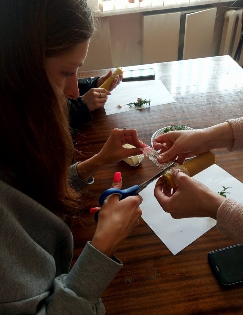 Під час майстер-класу здобувачі освіти виготовляли з вощини свічки, які мають особливий аромат та унікальні властивості.