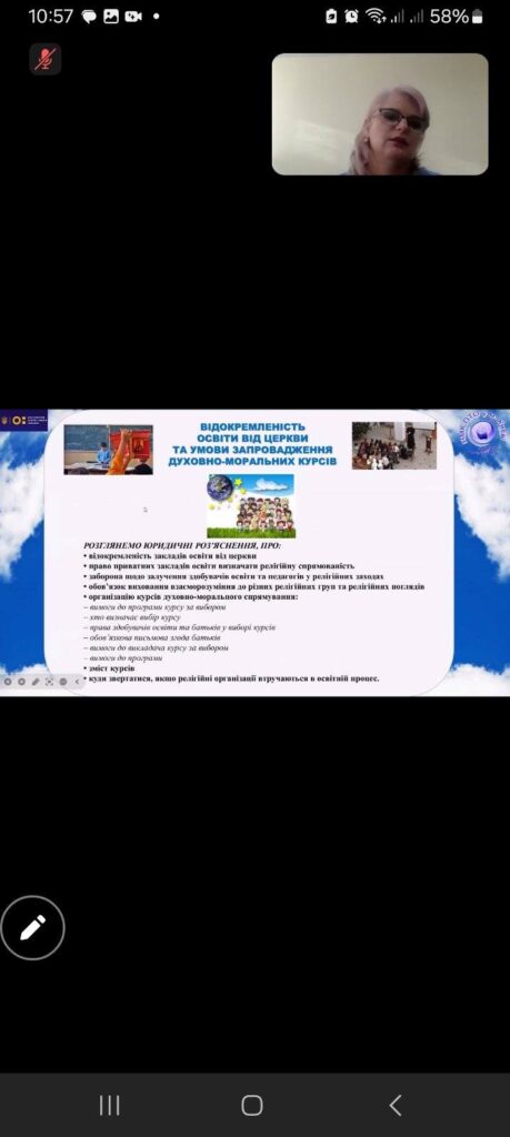 Відбувся Всеукраїнський вебінар на тему «Організація навчально-виховної роботи із здобувачами освіти, що належать до різних релігійних конфесій» (участь взяла Людмила Матюк)
