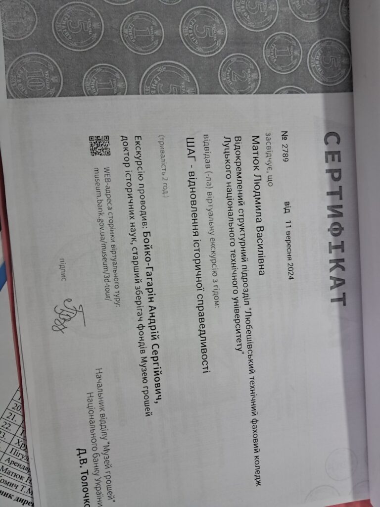 Заступник директора з НВР Людмила Матюк взяла участь у віртуальній екскурсії з гідом: ШАГ – відновлення історичної справедливості.