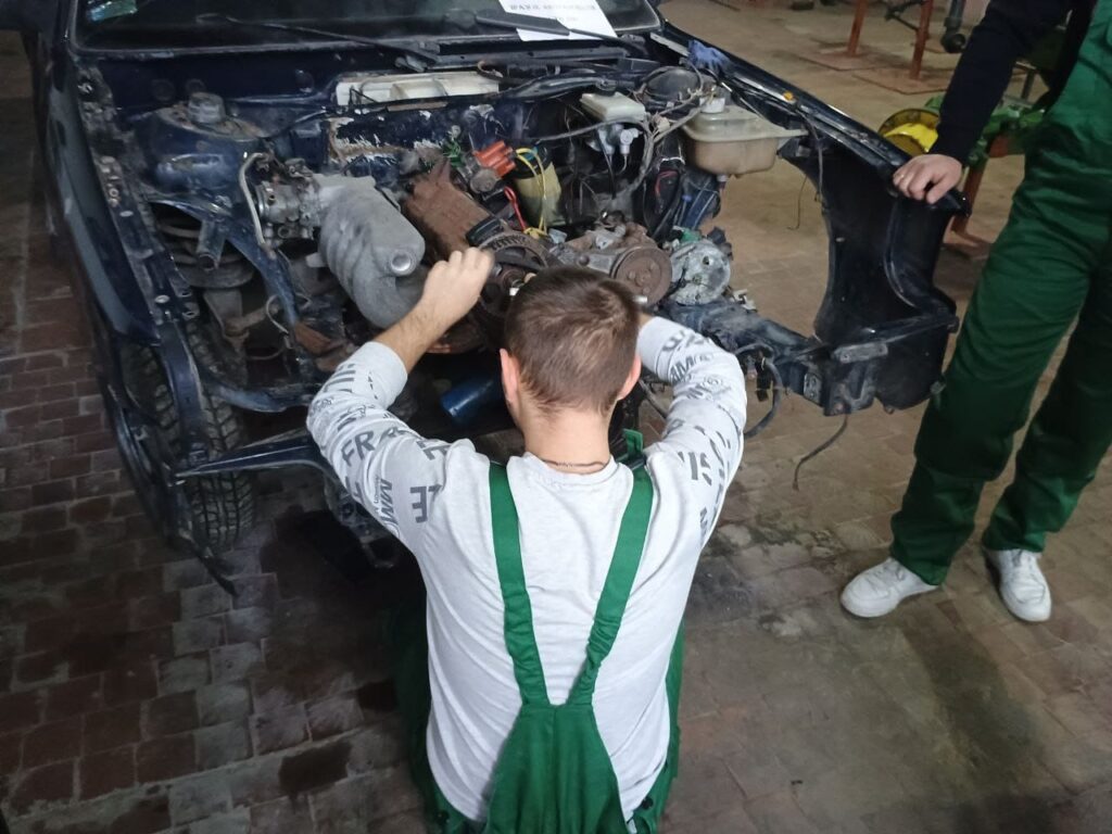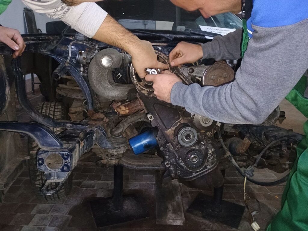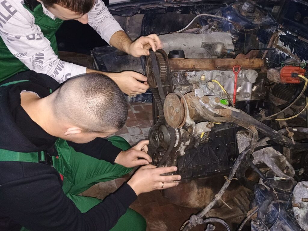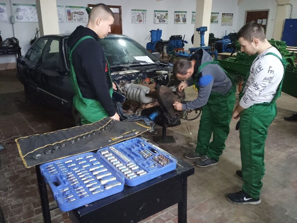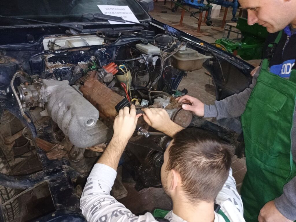 Відкрите лабораторне заняття з дисципліни “Технічна експлуатація автомобіля” на тему: “Встановлення міток ГРМ на автомобілі Audi 100”, проведене викладачем Романом Гунчиком у здобувачів освіти за спеціальністю “Автомобільний транспорт”