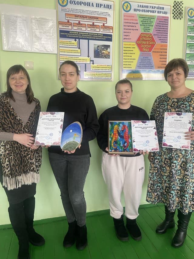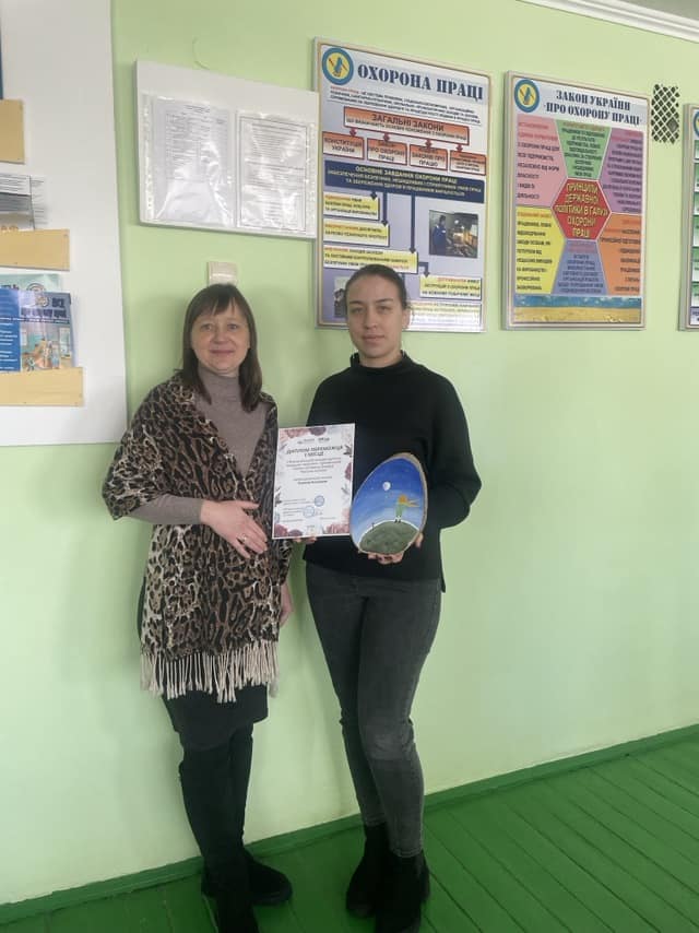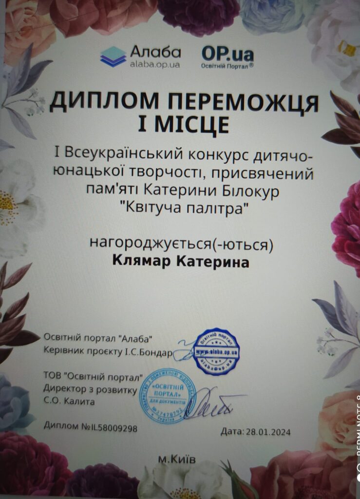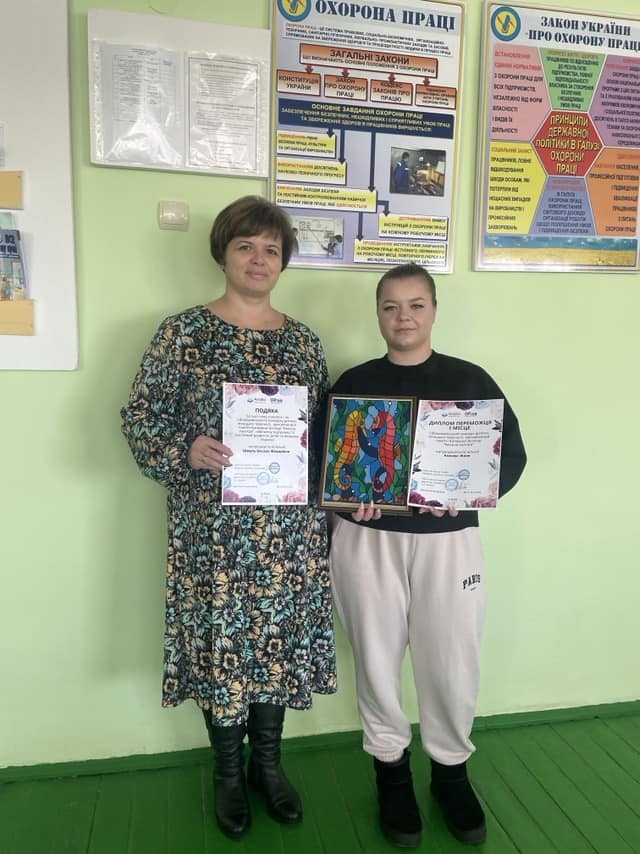 Здобувачі освіти спеціальності 192 Будівництво та цивільна інженерія, ОПП “Опорядження будівель і споруд та будівельний дизайн” Катерина Клямар (керівник Валентина Оласюк) та Женя Комзюк (керівник Оксана Шмаль), переможці І Всеукраїнського конкурсу дитячо-юнацької творчості “Квітуча палітра”.