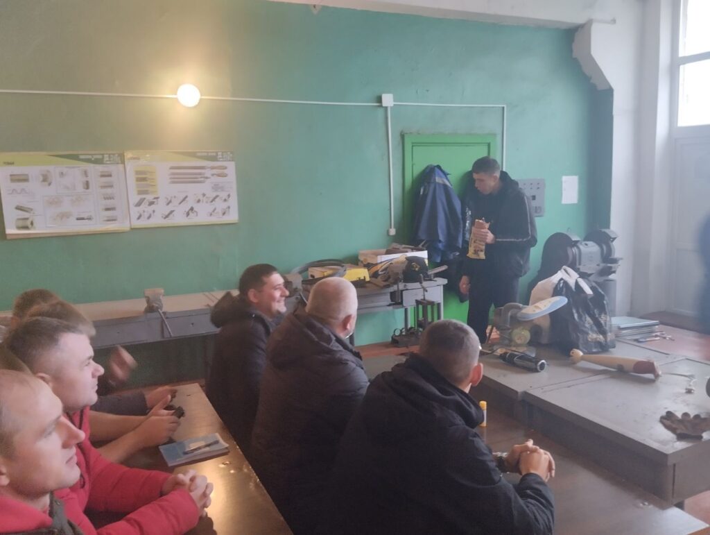 Навчальна практика (слюсарно-механічна) в групі 34-ГМ-Ф, спеціальності “Галузеве машинобудування” (керівник – Хомич Т. М.).