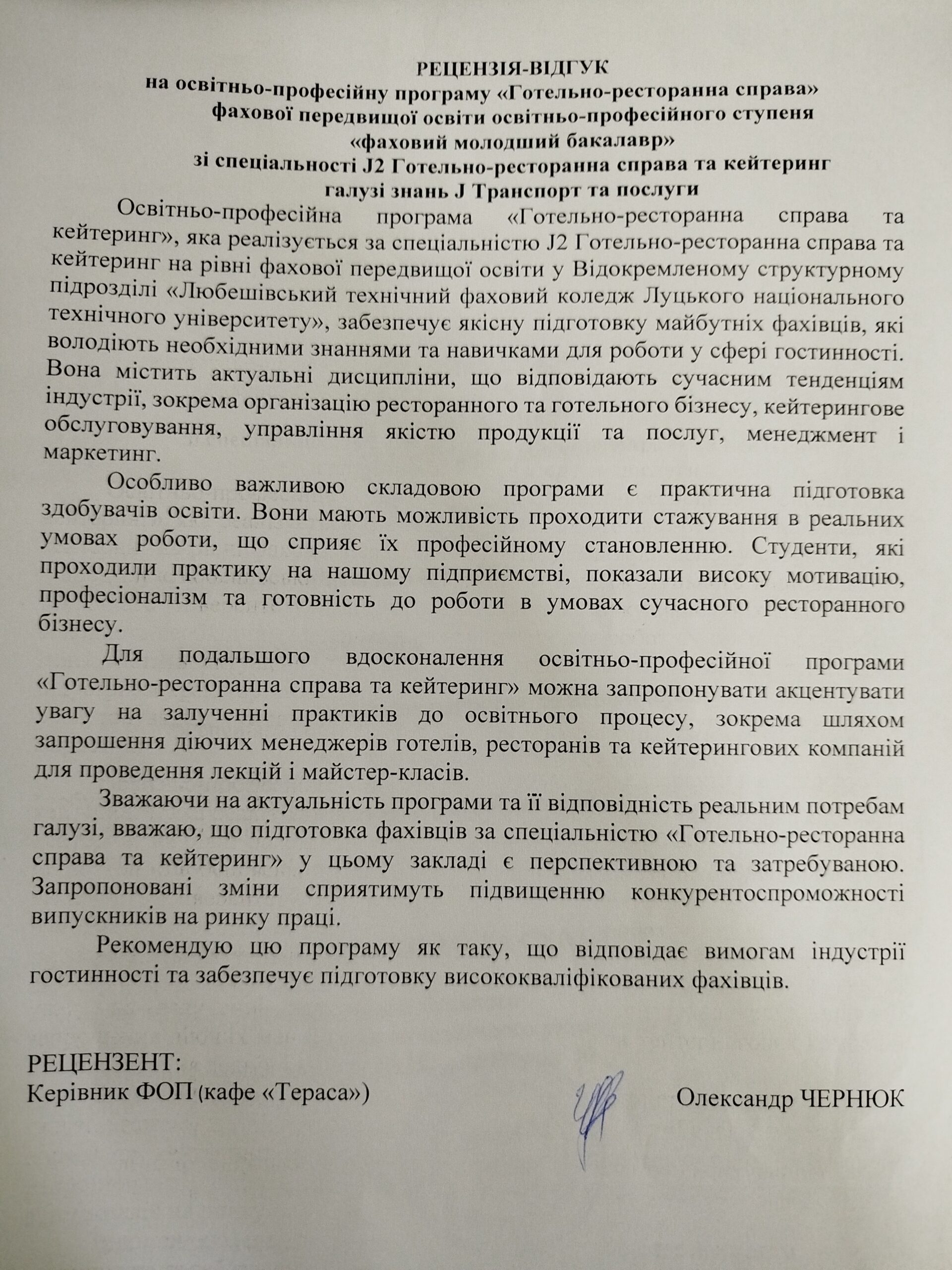 Рецензія-відгук на освітньо-професійну програму (ФОП Олександр Чернюк)