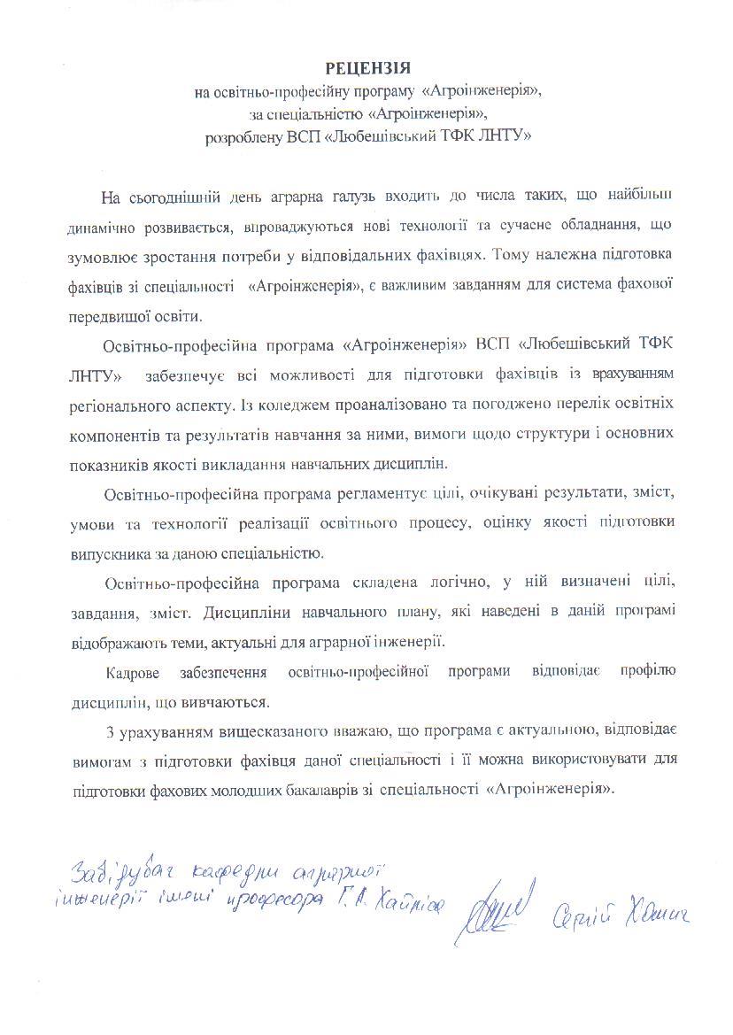 Рецензія-відгук на освітньо-професійну програму (декан ФГМІ ЛНТУ)