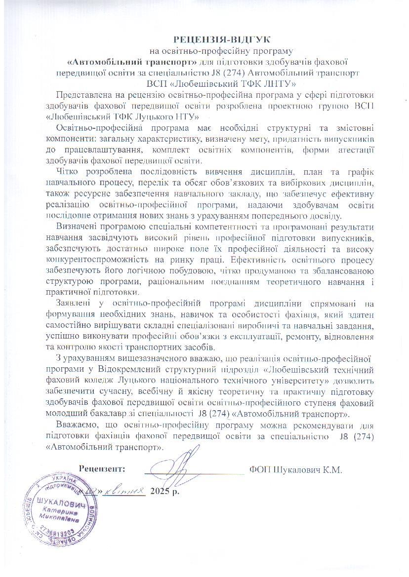 Рецензія на ОПП (ФОП К. М. Шукалович)