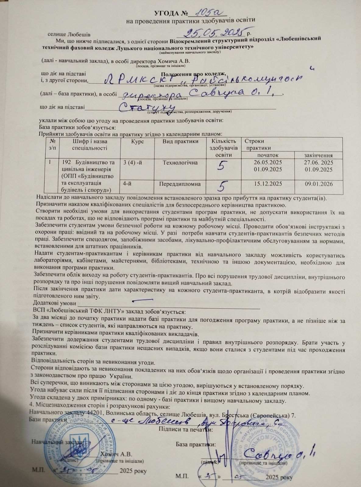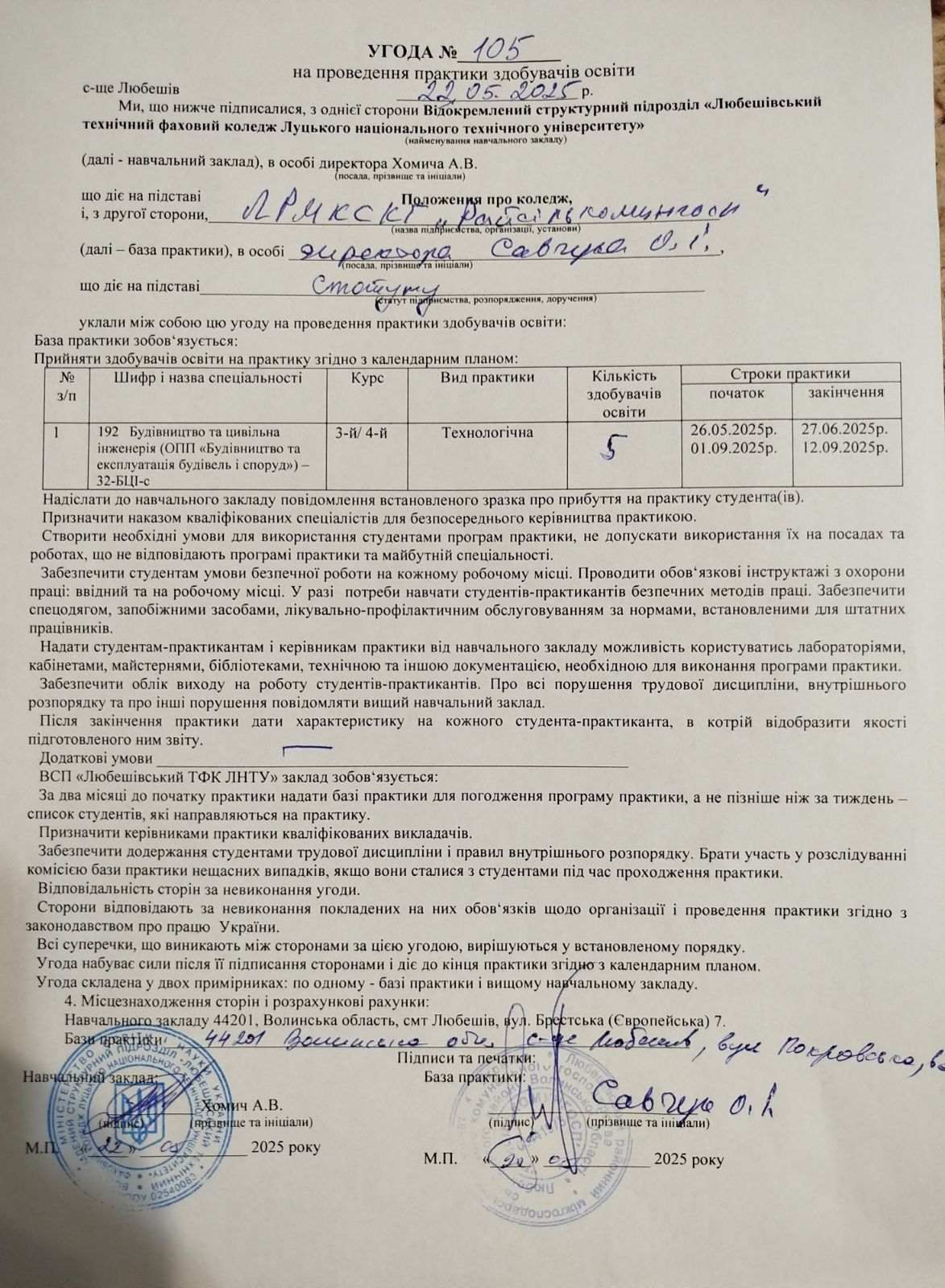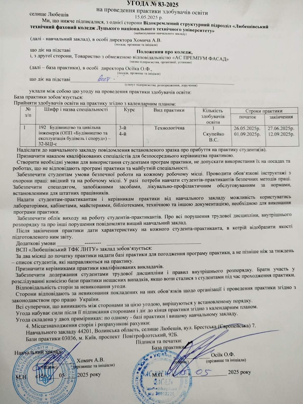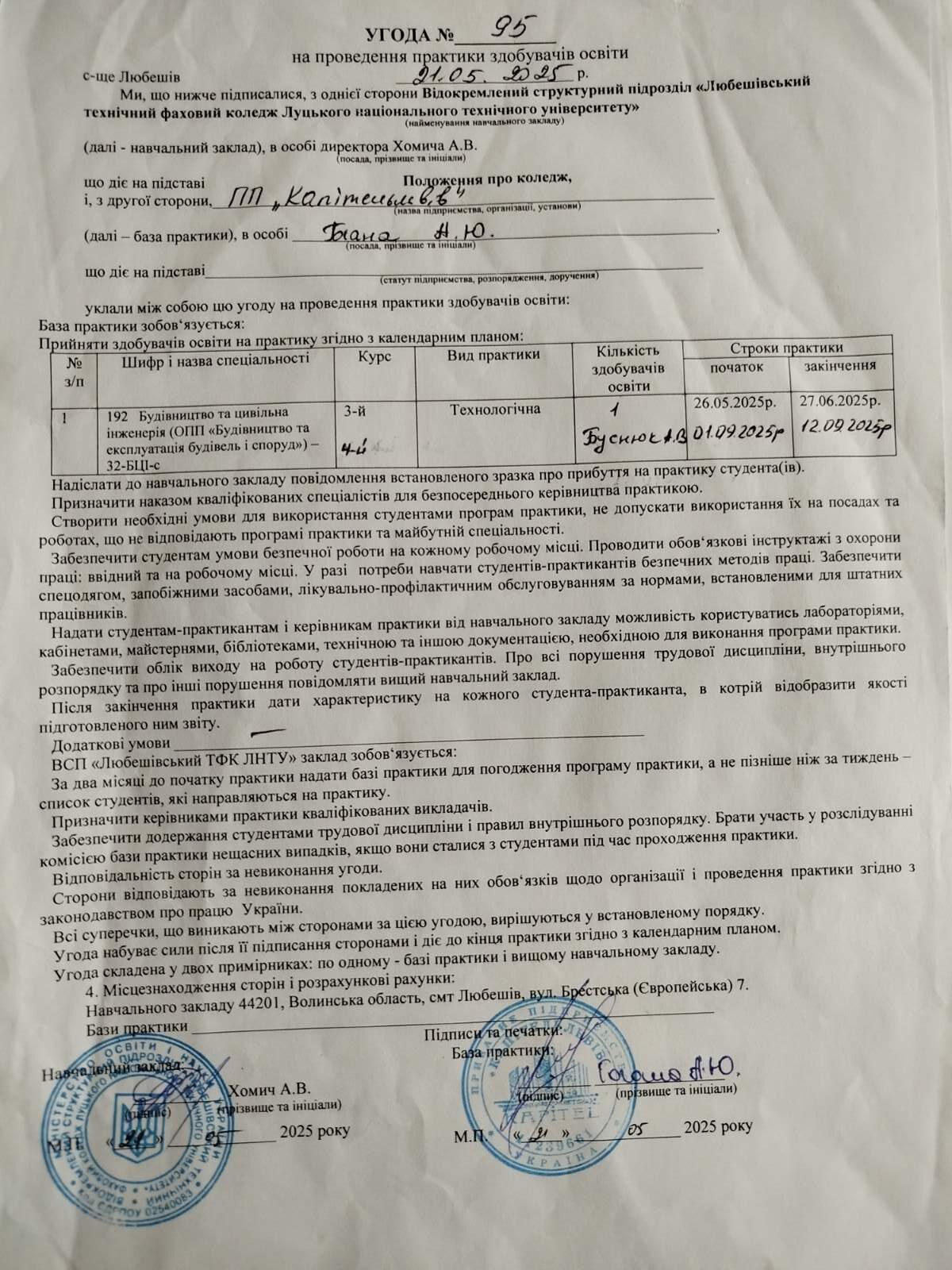 Навчальна практика здобувачів освіти спеціальності “Будівництво та цивільна інженерія”