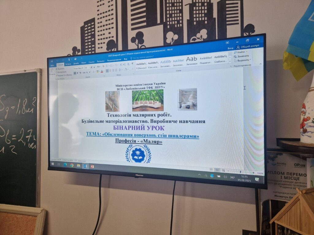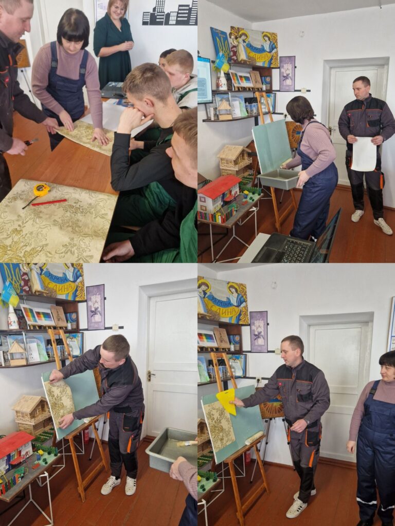 На уроці здобувачі освіти ознайомилися історією виникнення шпалер, їх видами, клейстерами, та з сучасними технологіями обклеювання стін шпалерами.