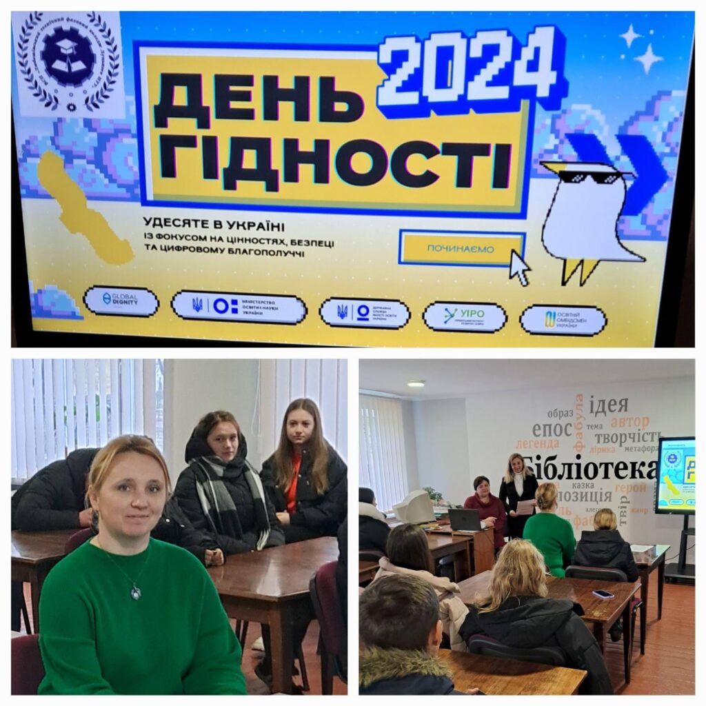 20.11.2024 року ВСП “Любешівський ТФК ЛНТУ” в восьме взяв участь у проєкті “День Гідності 2024”, який провели заступник директора з НВР Людмила МАТЮК, куратори та класні керівники Тетяна КРАВЧЕНКО, Альона КОРХ, Тамара ХОМИЧ для здобувачів освіти 26-ГРС-Ф, 46 та 24-К груп.