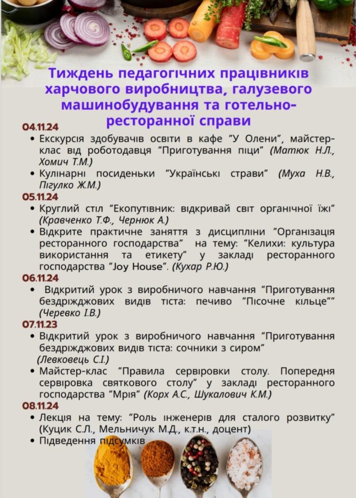 Home » Uncategorized » У коледжі стартував тиждень педагогічних працівників харчового виробництва, галузевого машинобудування та готельно-ресторанна справи