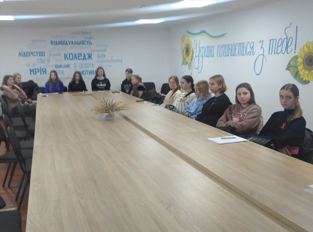 “Хто попереджений – той захищений”, – під таким гаслом до 1 грудня Всесвітнього дня боротьби зі СНІДом проведений захід практичним психологом Наталією Лопухович спільно з викладачем географії та біології Вірою Бущук з метою допомогти здобувачам освіти усвідомити всю небезпеку, яку несе СНІД, уберегти себе від цього страшного захворювання, зробити правильний вибір в житті за участі здобувачів освіти 12 – БЦІ -Ф та 36 групи “Кухар, кондитер”.