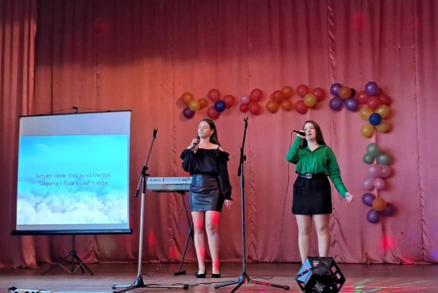 Дарина Клямар і Марина Голощук ( група 21- ОО-Ф) з піснею “Вище хмар”.