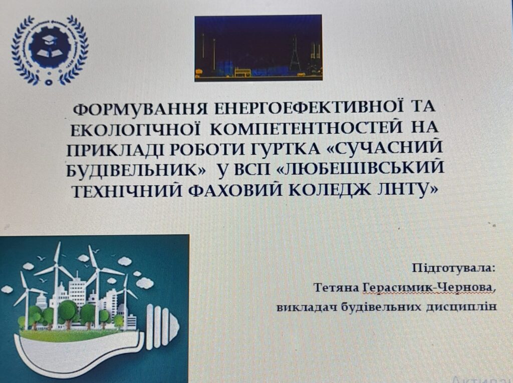 Презентувала роботу коледжу з формування енергетичної та екологічної компетентностей на прикладі роботи гуртка “Сучасний будівельник”, викладач – Тетяна Герасимик-Чернова.