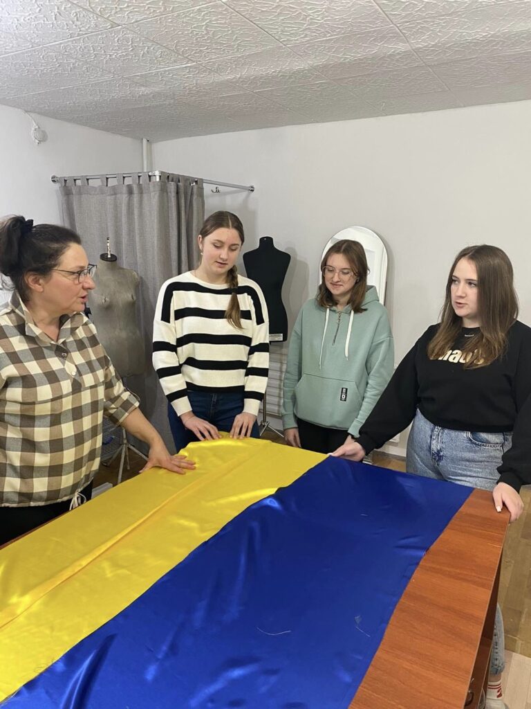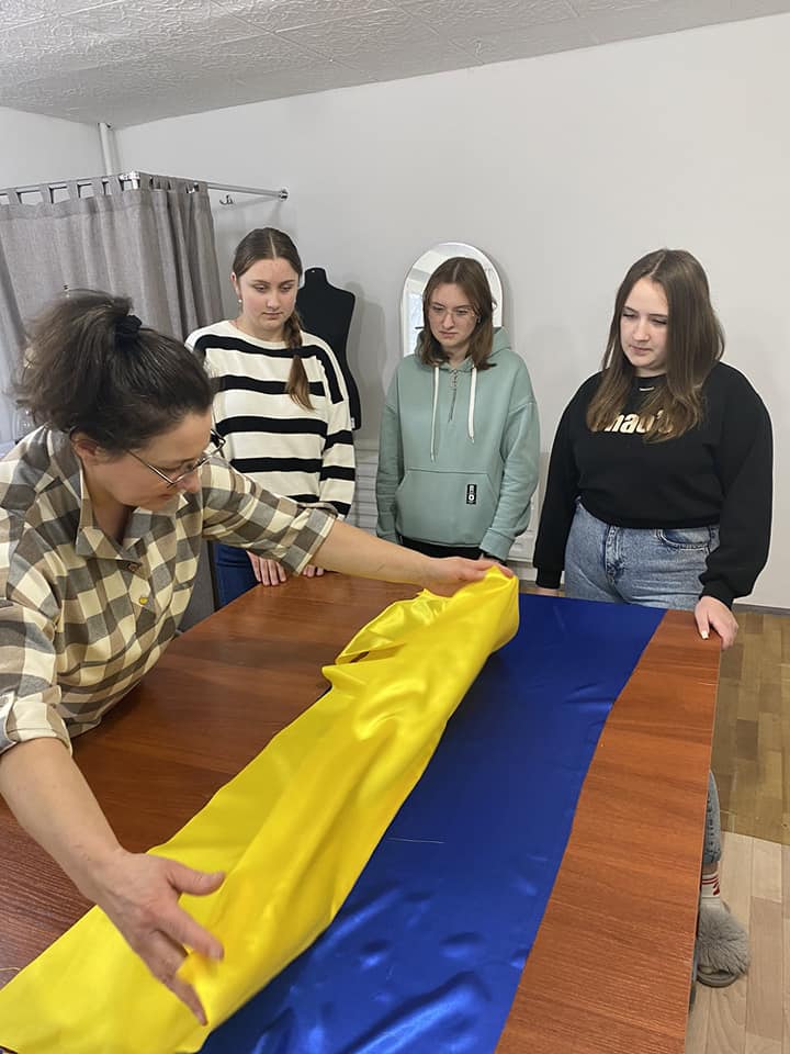 В рамках співпраці з швейною майстрнею, з нагоди Дня Гідності та Свободи, Пасевич А.І. проведено майстер-клас з пошиття прапора України. Здобувачі освіти, які проживають в гуртожитку з вихователем Швайко Т.І., змогли ознайомитися з технікою пошиття прапора