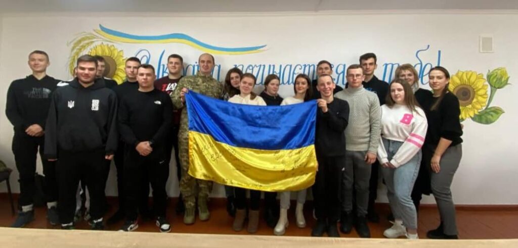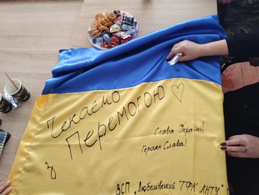 На завершення, здоувачі освіти подарували Андрію Михайловичу прапор України з побажанням і підписами.