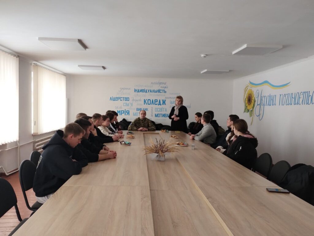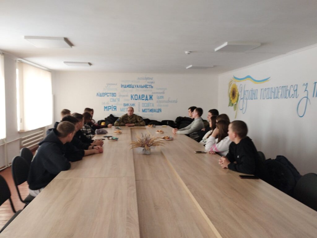 З метою виховання у здоувачів освіти патріотизму, гордості за наших захисників, відбулася зустріч студентсько-учнівської ради з воїном-захисником, старшим майстром коледжу – Андрієм Рябіїком, який бере участь у бойових діях захищаючи цілісність України.