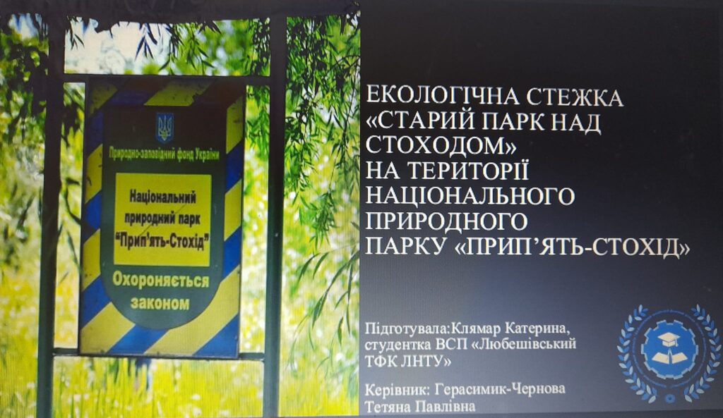 Катерина представила роботу на тему “Екологічна стежка “Старий парк над Стоходом” на території НПП “Прип’ять-Стохід”.