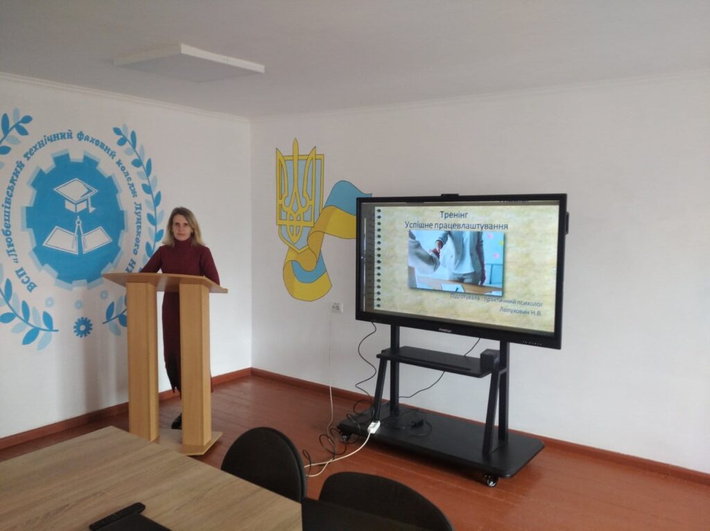 Дуже часто молода людина соромиться, або не вміє себе презентувати, не знає, як акцентувати увагу на своїх сильних сторонах. З метою оволодіння навичками підготовки до співбесіди з роботодавцем та написання резюме, в рамках роботи “Центру кар’єри” практичним психологом Наталією Лопухович із здобувачами освіти випускних груп: 42-БЦІ-Ф, 43- А-Ф, 31-ОО-Ф, 36- ГРС-Ф, проведено тренінг “Успішне працевлаштування”.