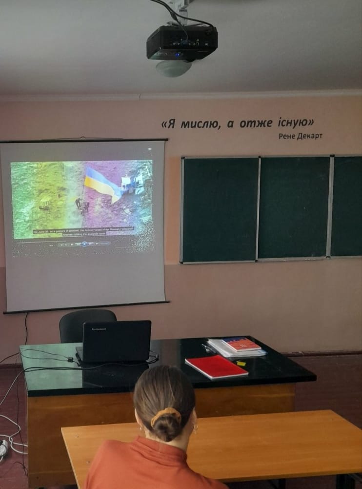 Урок патріотичного виховання, на тему: “Неоголошена війна”, присвячений другій річниці повномаштабного вторгнення Росії в Україну проведений викладачем історії Домальчуком С.В.