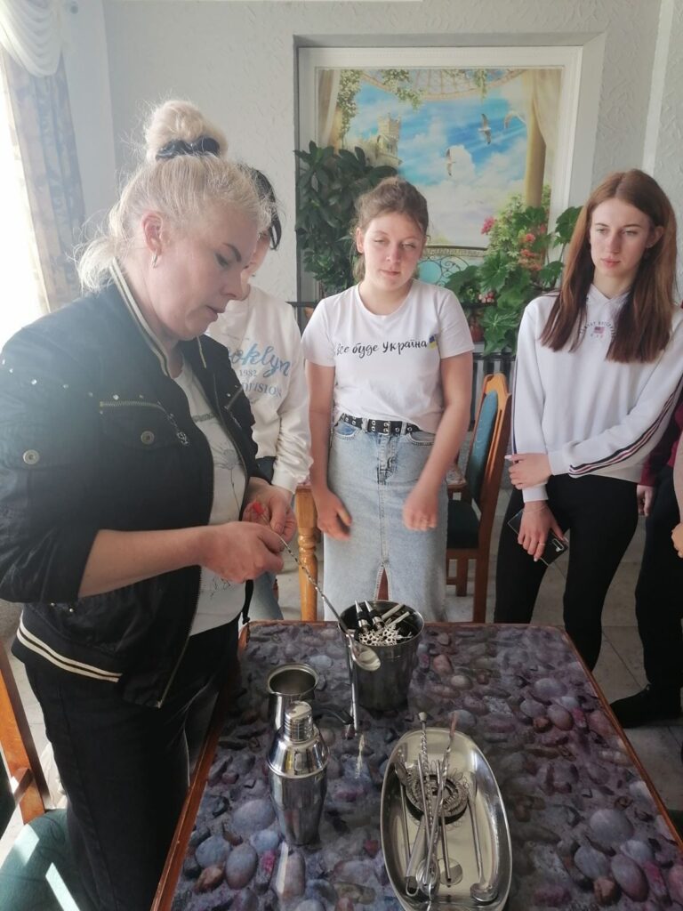 Лектором стала Катерина Шукалович, власниця готельно-ресторанного комплексу “МРІЯ”. Вона ознайомила здобувачів із технологія приготування гарячих коктейлів: пуншів, грогів та глінтвейнів, санітарно-гігієнічними вимогами щодо утримання закладів готельно-ресторанного господарства .
