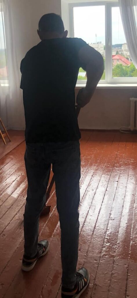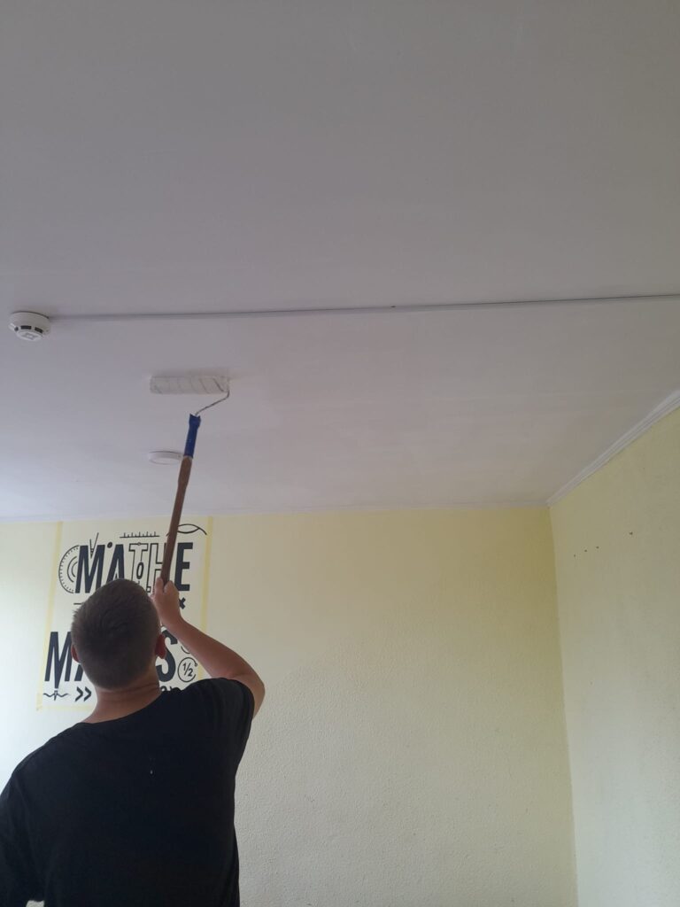Навчальна практика з штукатурних та малярних робіт у здобувачів освіти другого курсу за ОПП “Опорядження будівель і споруд та будівельний дизайн”. Відпрацювують технології нанесення штукатурок та малярних фарб вручну.