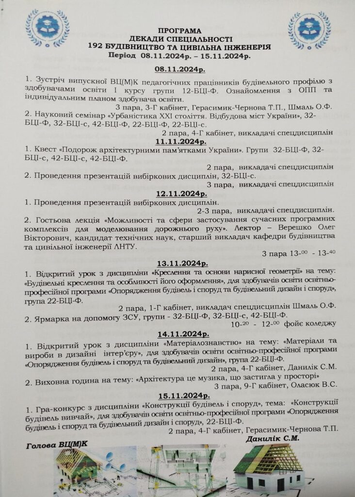 У коледжі, в період з 8 по 15 листопада, проходить декада спеціальності “Будівництво та цивільна інженерія”.