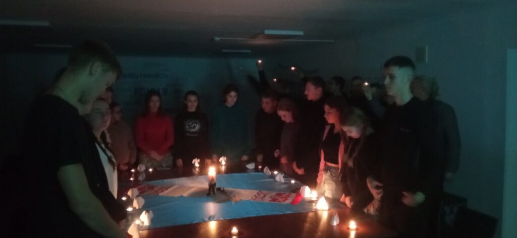Щороку в четверту суботу листопада Україна вшановує пам’ять жертв Голодомору 1932-1933 рр. і масових штучних голодів 1921-1923 і 1946-1947 рр. Цього року до Дня пам’яті жертв голодоморів вихователями гуртожитку (Понікарчик Л.В, Кондрацький О.А.) спільно з бібліотекарем (Корець Н.М.) було проведено тематичну годину-пам’яті “Голодомор – скорбота в серцях поколінь”.