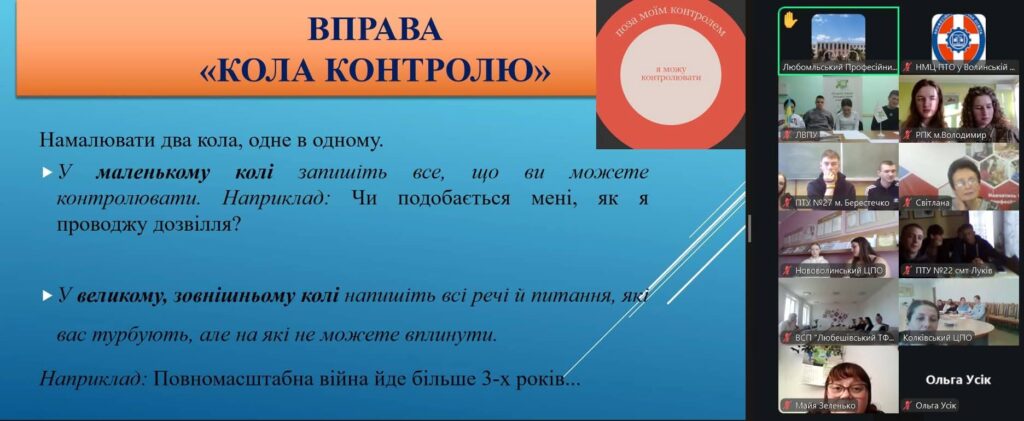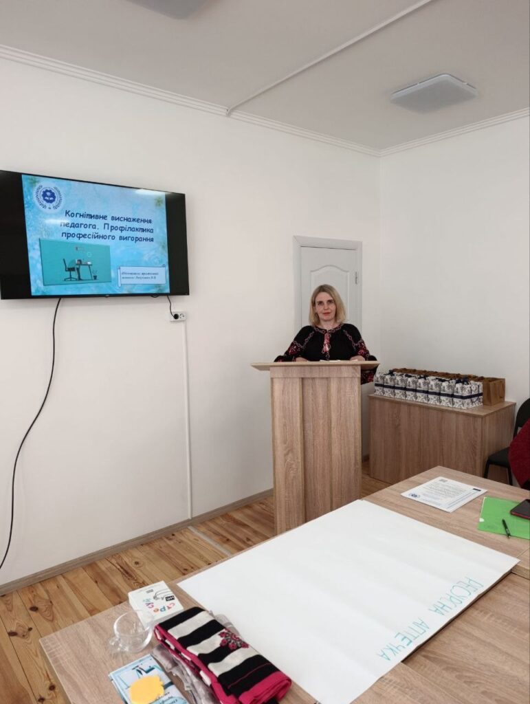 Когнітивне виснаження педагога та як боротися з професійним вигоранням – тема з якою виступила психолог коледжу Наталія Лопухович. Вона провела для присутніх тренінг, який був спрямований на розкриття аспектів поняття емоційного вигорання, основних ознак та причин винесення даного стану.
