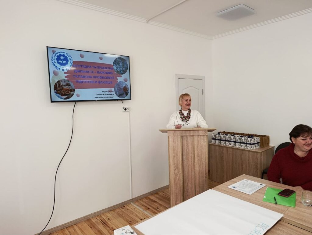 Про дослідну та проєктну діяльність, як важливу складову професійної підготовки фахівців розповіла голова ЦМК педагогічних працівників харчового виробництва, готельно-ресторанна справи та кейтерингу Тетяна Кравченко.
