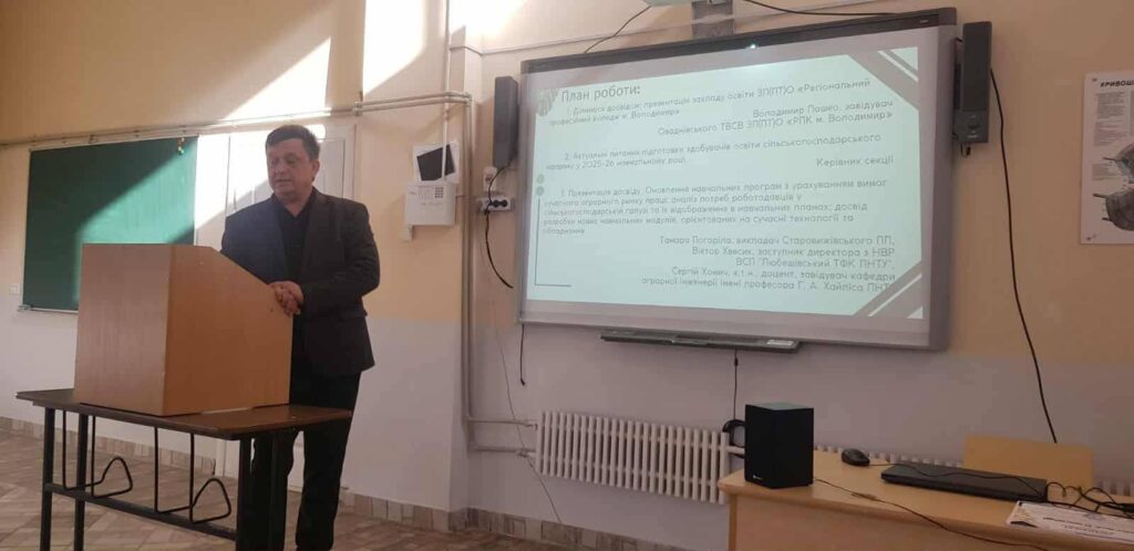 08 жовтня 2025 року на базі Оваднівського ТВСВ ЗП(ПТ)О “Регіональний професійний коледж м. Володимир” відбулося засідання секції педагогічних працівників професій агропромислового комплексу та сільськогосподарського виробництва на тему “Сучасний освітній простір у закладі профтехосвіти: практичний досвід” зібрала освітян, готових обмінятися досвідом та визначити стратегічні напрями розвитку професійної підготовки.