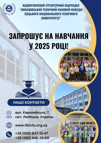 ВСП «Любешівський ТФК ЛНТУ» відкриває двері у світ цікавих спеціальностей та професій!