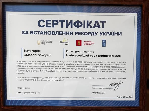 Отримані 10 квітня сертифікати засвідчують внесок у реалізацію загальнонаціональної просвітницької ініціативи.
