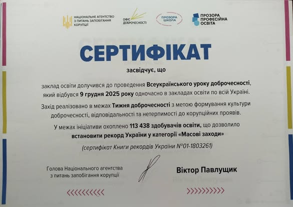 ВСП “Любешівський ТФК ЛНТУ” долучився до Всеукраїнського уроку доброчесності.